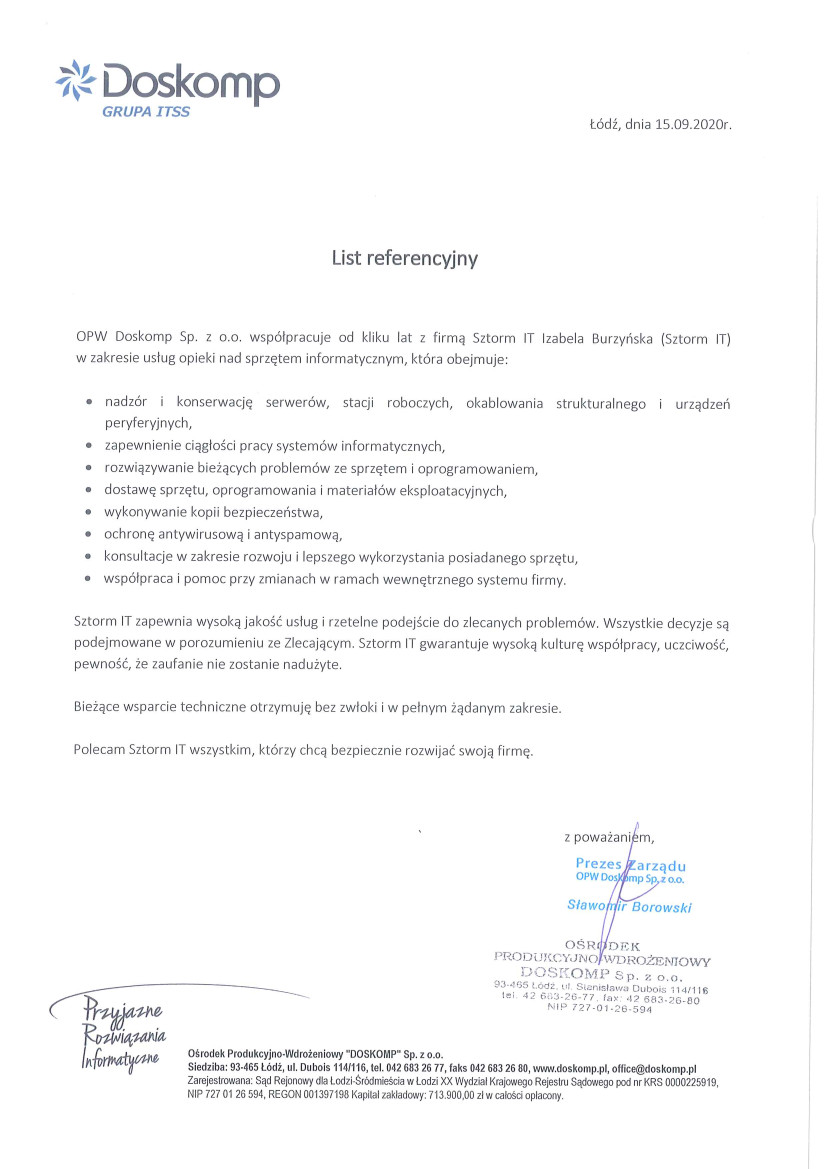 Obsługa informatyczna Sztorm IT jest dedykowana małym i średnim firmom z Łodzi, Pabianic, Łasku, Sieradza, Rzgowa, Radomska i Bełchatowa – typowo 3–20 stanowisk komputerowych z 1–2 serwerami. Obsługujemy biura rachunkowe, kancelarie, firmy produkcyjne, handel, medycynę i inne sektory wymagające stabilnej infrastruktury IT bez własnego działu informatycznego.